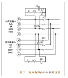 在直流屏中,除了整流器和蓄電池外,還有一個(gè)重要的部分,即溝通輸入電源部分。溝通輸入電源是直流屏能否正常供電的前提條件,而一般直流屏所需要的溝通輸入電源,都是由兩路電源組成,一路主用,另一路備用。在主用電源停電時(shí),備用電源主動(dòng)切換,在主用康復(fù)供電時(shí),主動(dòng)切換回主用。下面介紹一下兩路電源主動(dòng)切換的原理,主動(dòng)切換原理圖如圖7所示。三相溝通輸入Al、B1、Cl為1#輸入電源,三相溝通輸入A2、B2、C2為2#輸入電源。正常情況下,即1#、2#溝通輸入電源供電正常時(shí),在1#溝通輸入電源操控回路中,中心繼電器ZJ線圈帶電,使其常開(kāi)觸點(diǎn)ZJ閉合,一起2#溝通輸入電源回路中的Z常閉觸點(diǎn)斷開(kāi),2#溝通輸入電源操控回路中的2#接觸器2CJ線圈不帶電,那么,1#溝通輸入電源操控回路中的2CJ常閉觸點(diǎn)是閉合的。因此,1#溝通輸人電源操控回路中ZJ-2CJ-ICJ回路通電,1#接觸器1CJ的主觸點(diǎn)閉合,l#溝通輸人電源主回路接通,1#溝通輸入電源被接入整流器回路中,供給整流器溝通電源。當(dāng)1#溝通輸入電源忽然中止時(shí),中心繼電器Z線圈失電,其常開(kāi)觸點(diǎn)Z翻開(kāi),使ZJ-2CJ-ICJ回路斷電,接觸器ICJ主觸點(diǎn)斷開(kāi),主回路斷開(kāi)。而此刻在2溝通輸入電源操控回路中,因?yàn)橹行睦^電器Z線圈的失電,使Z常閉觸點(diǎn)閉合,加之1#接觸器lCJ線圈的失電,使ICJ的常閉觸點(diǎn)也閉合。因此,2溝通輸入電源操控回路中ZJ-ICJ-2CJ回路通電,2m接觸器2CJ線圈帶電,使2#接觸器2CJ主觸點(diǎn)閉合,2#溝通輸入電源主回路接通,2m溝通輸入電源被接入整流器回路中,供給整流器溝通電源。當(dāng)l#溝通輸入電源康復(fù)供電時(shí),2#溝通輸人電源回路中的常閉觸點(diǎn)ZJ翻開(kāi),2”接觸器線圈2CJ失電,2接觸器主觸點(diǎn)斷開(kāi),切斷了2#溝通輸入電源供電,1#溝通輸入電源又被重新切換回整流器供電回路中去。