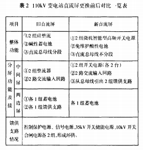 如表2所示為110kV變電站真流l川更換前后對比一覽表。更換后的直流體系滿足變電站設備對直流體系的要求。
