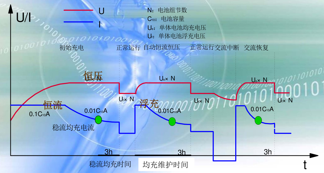 浮充:在正常運行時,充電裝置承擔經常負荷,同時向蓄電池組補充充電,以補充蓄電池的自放電,使蓄電池以滿容量的狀態處于備用。