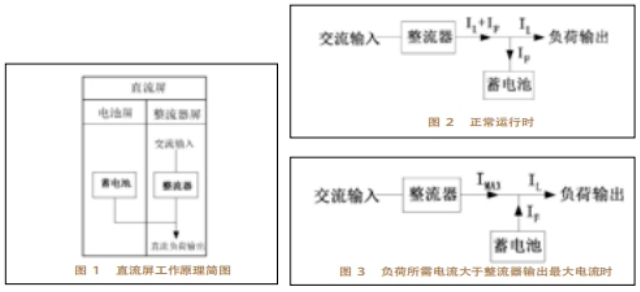 2直流屏作業原理圖1為直流屏作業原理簡圖。在圖1中,蓄電池和整流器組成了變電站的直流屏,當有溝通輸入電源時,整流器作業,把溝通電整流成直流電,與蓄電池一起協作,供應直流負荷安穩的直流電源。
