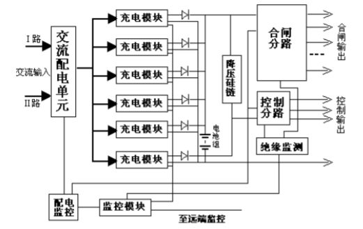 直流屏由高頻開關整流模塊,可編程控制器(PLC,蓄電池組,絕緣監(jiān)視裝置,蓄電池自動監(jiān)測裝置,母線電壓自動調節(jié)裝置,觸摸屏,預告信號裝置等組成。蓄電池采用免維護電池。