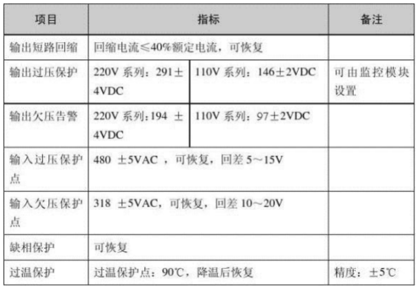 充電模塊的通用技術指標如表2-1-1表所示: