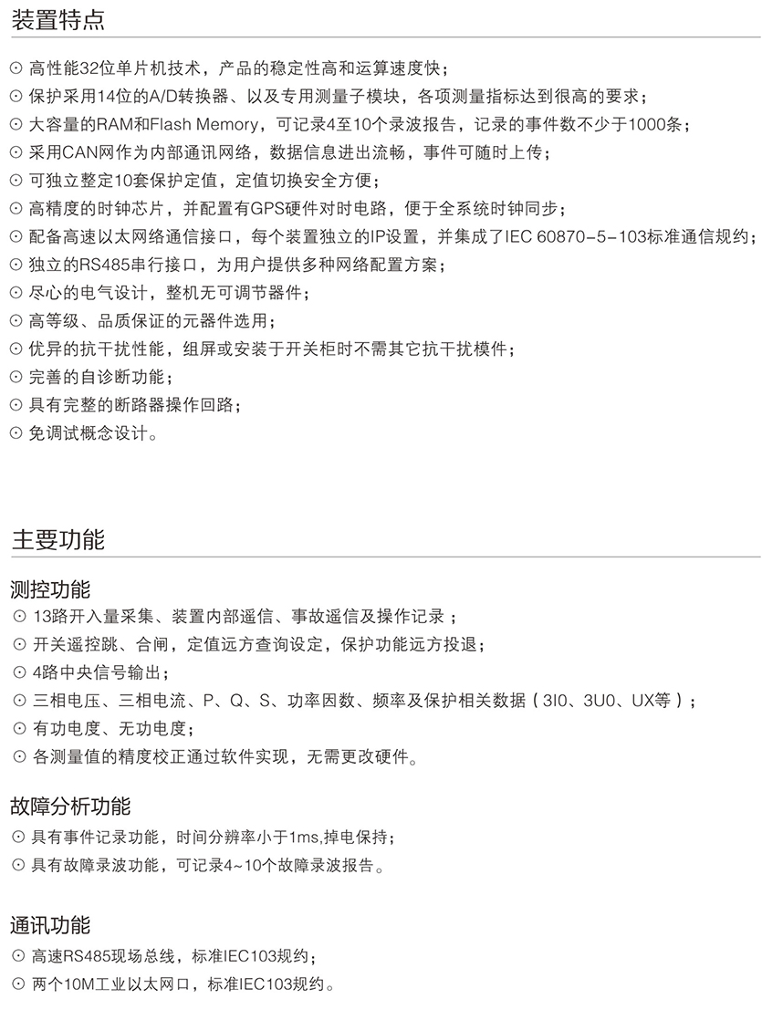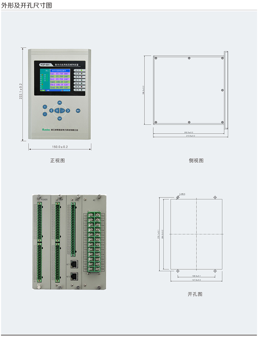 KSP-900 系列綜合保護(hù)測(cè)控裝置主要適用于 110kV 及以下電壓等級(jí) 間隔單元的保護(hù)測(cè)控,為變電站、發(fā)電廠、高低壓配電廠及廠用電 系統(tǒng)的保護(hù)與控制提供 完整的解決方案。產(chǎn)品采用完全真彩漢化的 顯示技術(shù) , 人機(jī)界面友好,使您免除査找說(shuō)明書操作的煩惱。每款產(chǎn) 品均配置了基于 PC 機(jī)調(diào)試界面的接口,結(jié)合專用分析調(diào)試軟件包 , 大大改善了現(xiàn)場(chǎng)調(diào)試手段。裝置可以集中組屏安裝,也可以分散在 開關(guān)柜就地安裝。