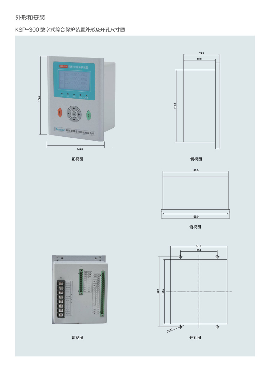 KSP-300 數字式綜合保護裝置是我公司為適應我國電氣成套事業 發 展的需要,積累多年電力自動化產品開發經驗,運用新技術、新工 藝 而推出的一款經濟型綜合保護裝置。裝置結構設計緊湊、體積小 巧,交 直流電源通用,可滿足 10KV 及以下電壓等級進出線、廠用 變等保護測 控功能。